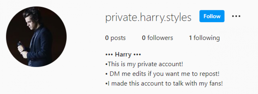 harry_styles.private | harry_styles.private is a fake Harry Styles account on Instagram, asking for explicit photos, videos... | Instagram Scam |