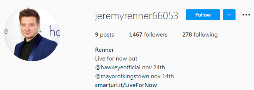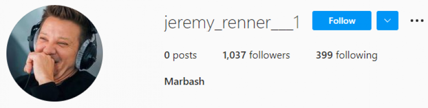 jeremy_renner1245 | jeremy_renner1245 is a fake Jeremy Renner account, involved in money scams. | Instagram Scam |