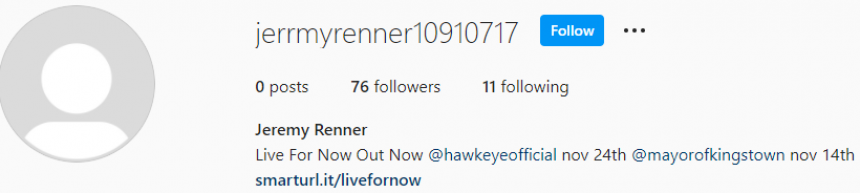 jerrmyrenner10910717 | jerrmyrenner10910717 is an impersonator of Jeremy Renner, involved in money scams. | Instagram Scam |