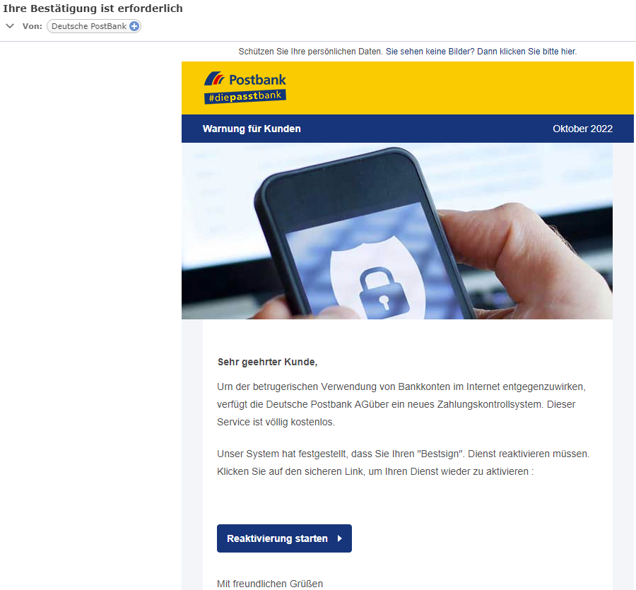 hhxfYoA@e-i.com | Hab diese email bekommen.. angeblich von der Postbank. | Email Scam |