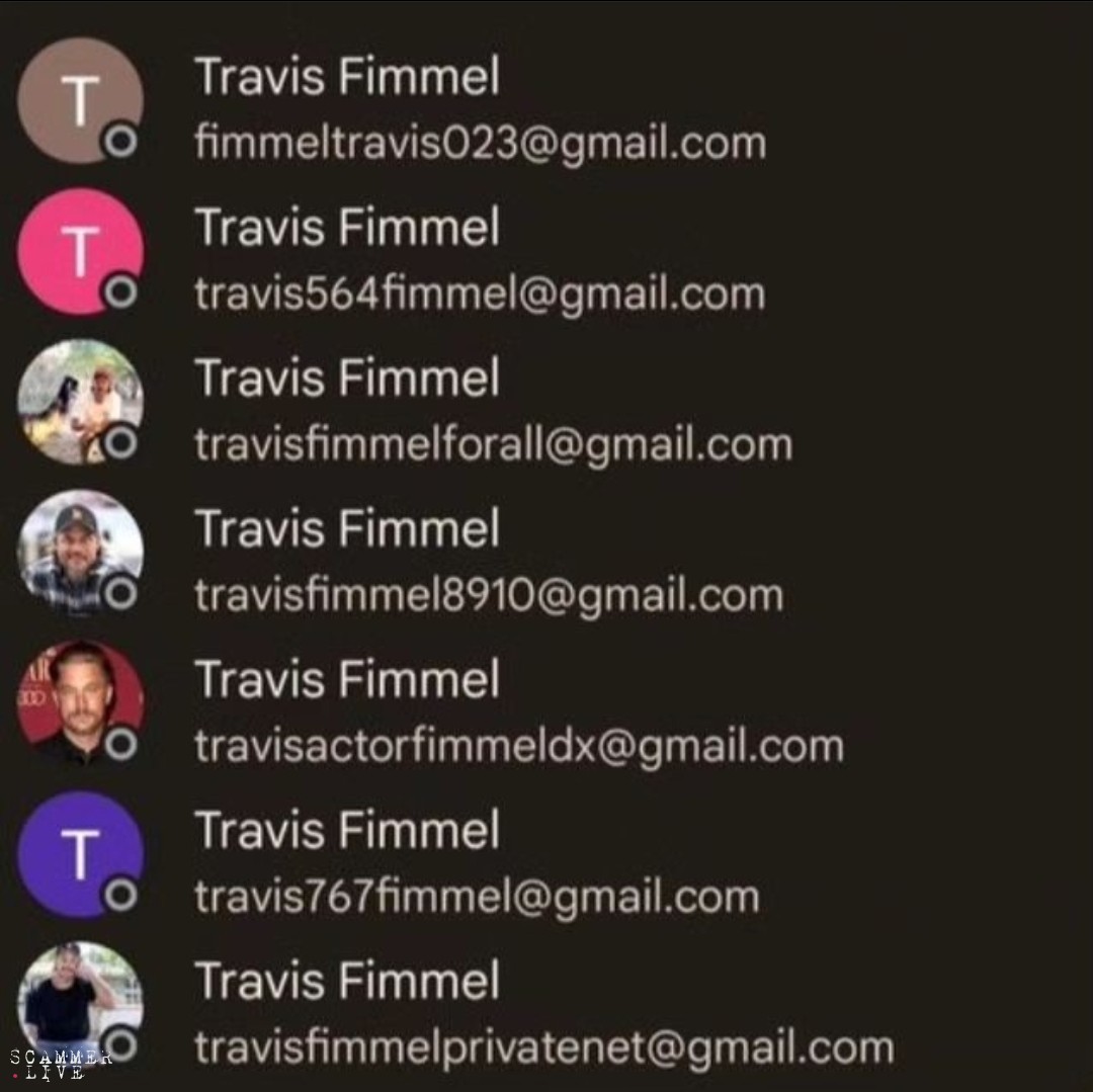 tfimmel0004@gmail.com | Travis Fimmel impersonator on GMAIL asking for money and other digital goods. | Gmail Scam | - | |