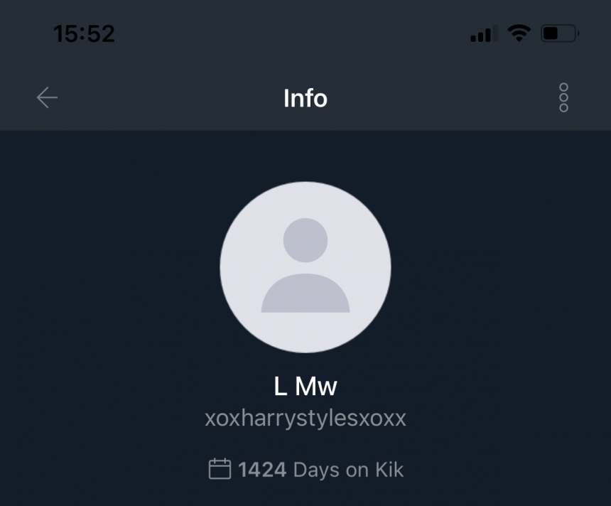 xoxharrystylesxoxx | Impersonating Harry Styles on Kik. Asking for explicit pictures and videos. Have in mind, the real H... | Kik Scam |