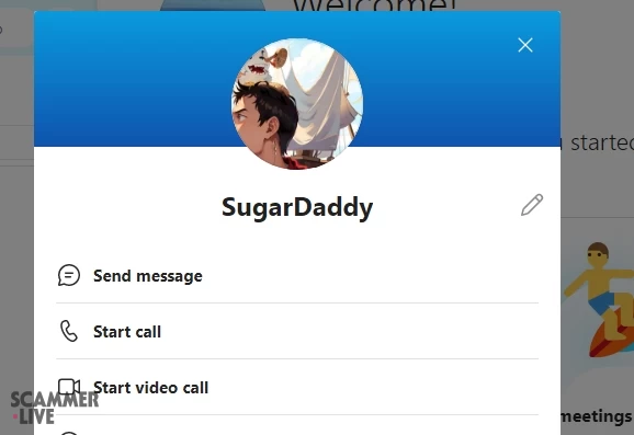 live:.cid.4093401a02c09adf | Fake Sugar Daddy on Skype. Scammer is trying to steal money / gift cards / fee scam / also trying to... | Sugar Daddy Scam |