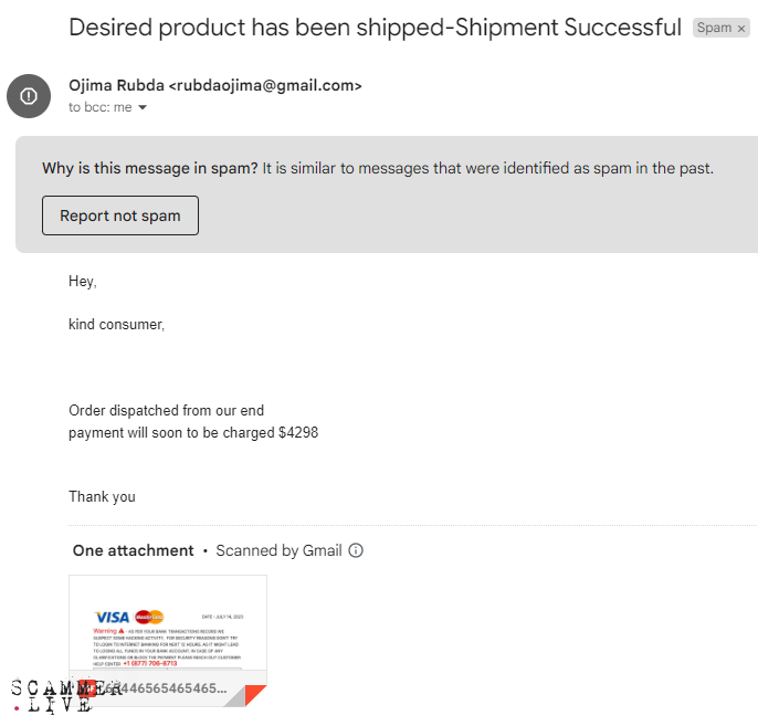 Scam/Fraud Info:received this scam email in my spam folder, on my gmail account