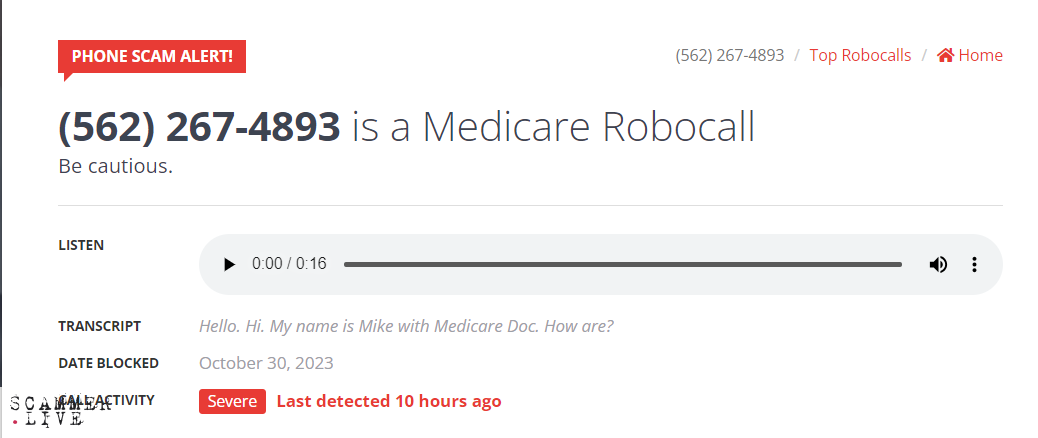 Scam/Fraud Info:Hello. Hi. My name is Mike with Medicare Doc. How are?