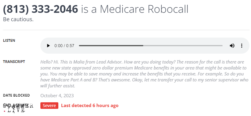 Hello? Hi. This is Malia from Lead Advisor. How are you doing today? The reason for the call is there are some new state approved zero dollar premium Medicare benefits in your area that might be available to you. You may be able to save money and increase the benefits that you receive. For example. So do you have Medicare Part A and B? That's awesome. Okay, let me transfer your call to my senior supervisor who will further assist.