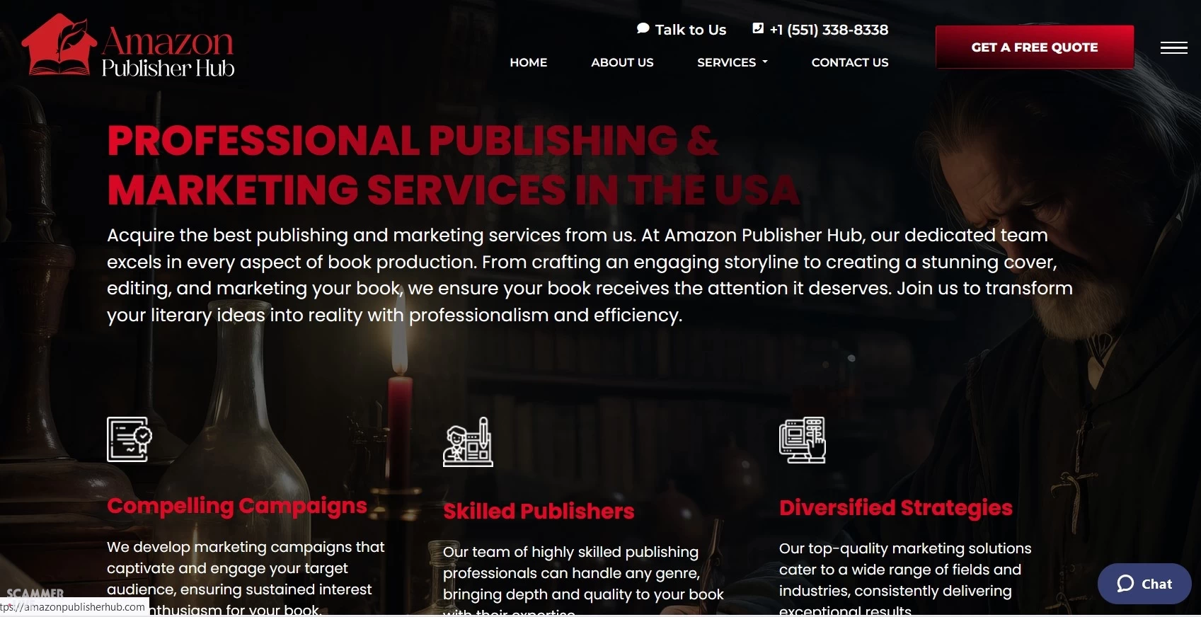 Scammers pretending to be Amazon. They trick people into thinking they are publishing a book through Amazon, but there's no product! They just steal money.