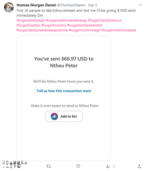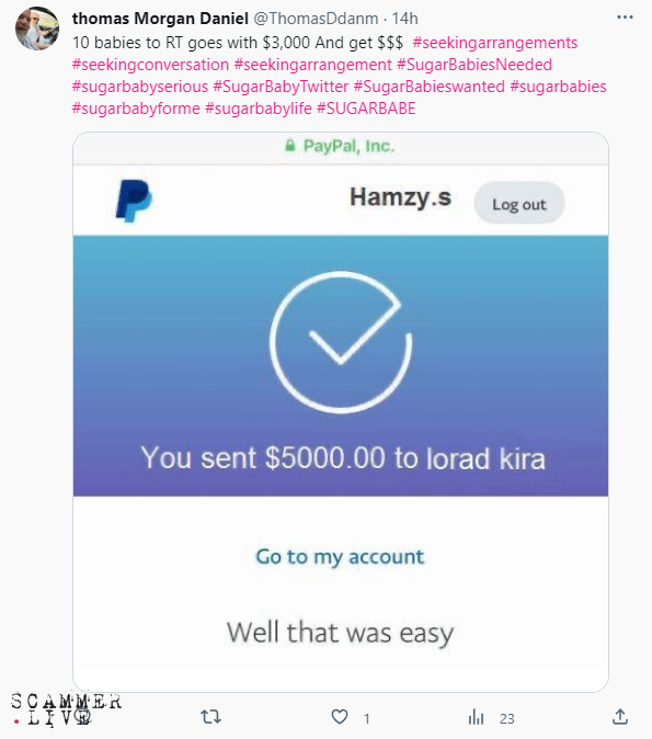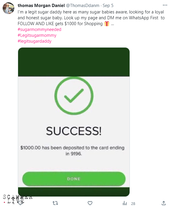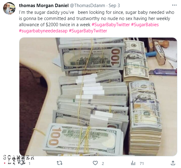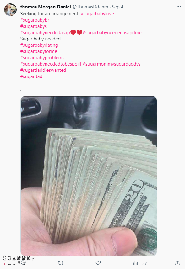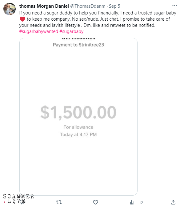 Scam/Fraud Info:Sugar Daddy scammer ask for fees/money, you will never get anything in return, its a scam. He photoshopped the screenshots he is showing to you with fake balance. He also told his victims to first make a selfie holding up a paper saying that they got money, but they never received anything either, its just words, they promise you something but it will never happen, you are the one who will lose all the money at the end.