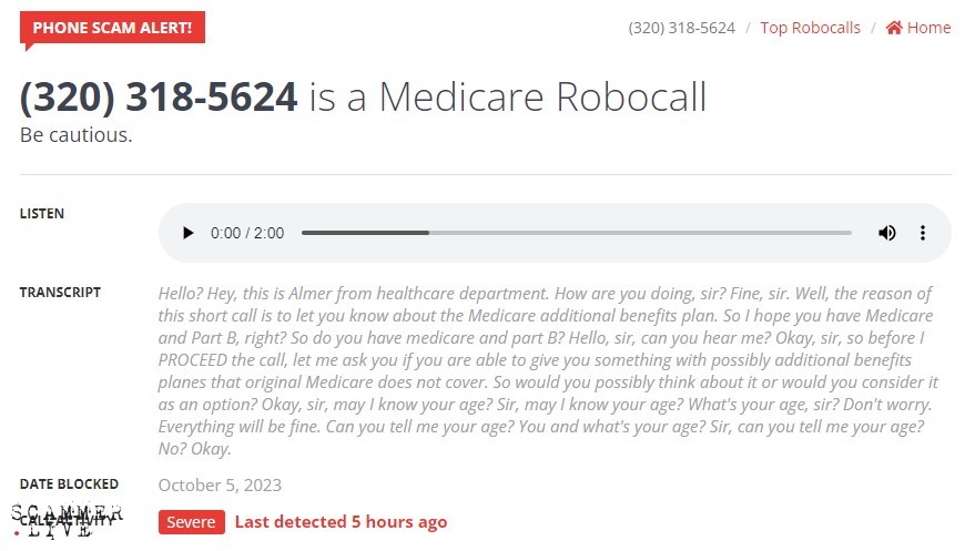 Medicare Robocall: Almer from healthcare department