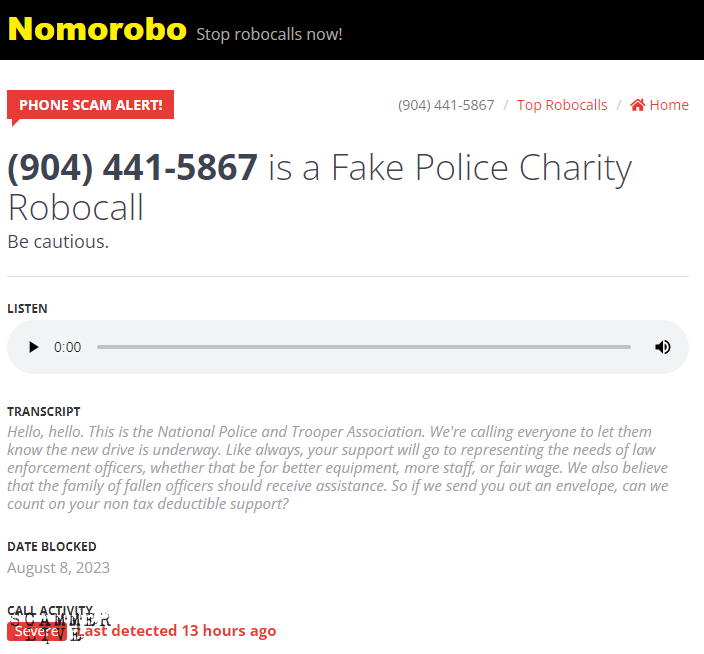 Fake Police Charity Scam