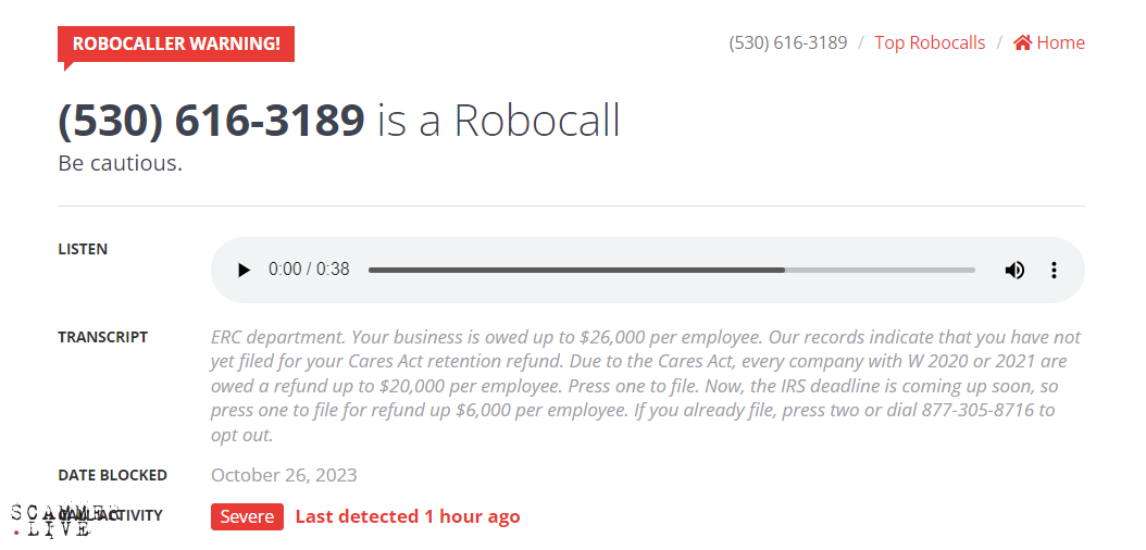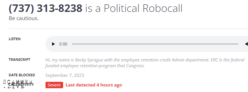 Becky Sprague / employee retention credit / robocaller