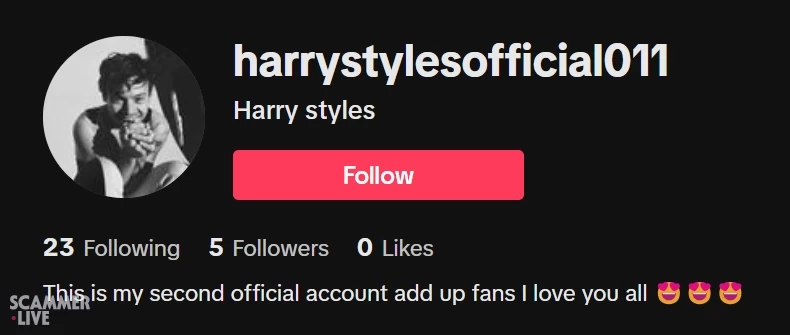 Fake Harry Styles on TikTok. Scammer is trying to steal mone...