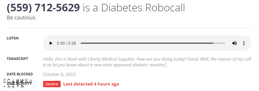 robocall / robocaller / Liberty Medical Supplies
