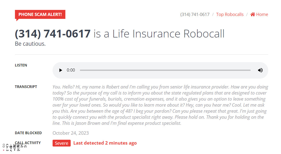 Life Insurance Robocall scam