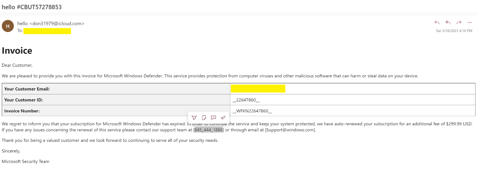 MS Defender Refund Scam