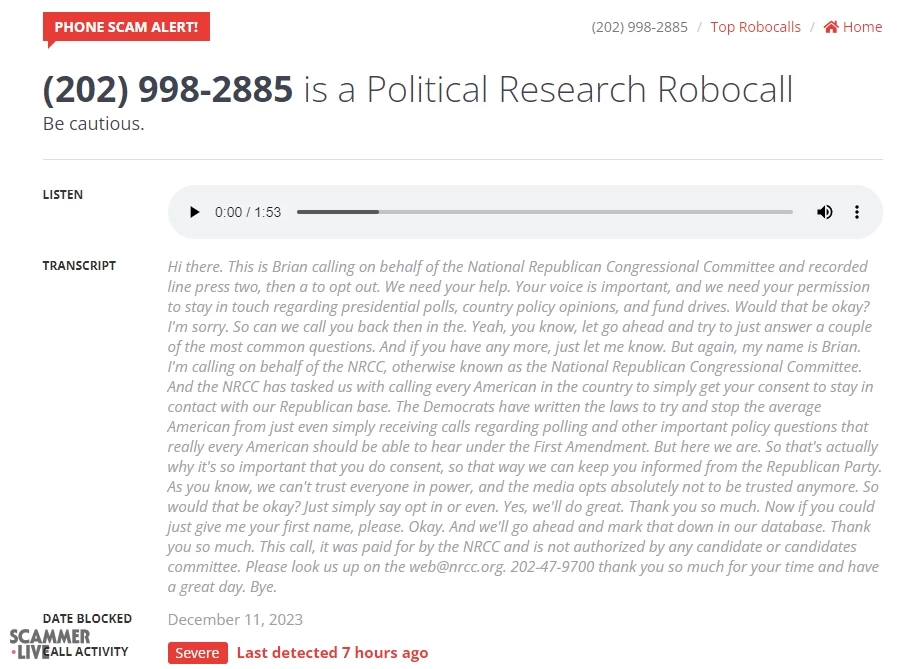 Political Research Robocall