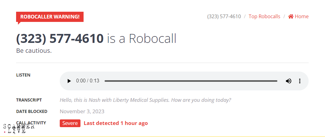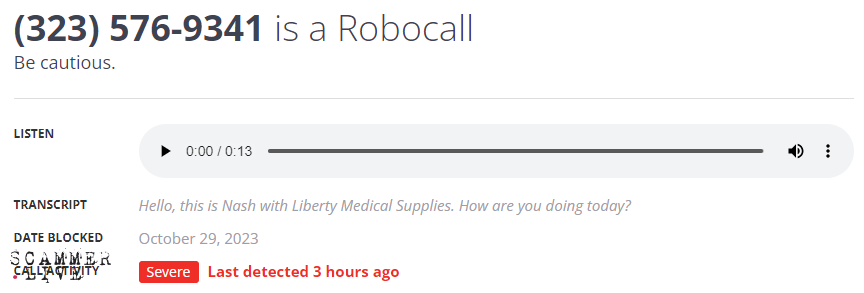 Robocall / Nash with Liberty Medical Supplies / Robocaller
