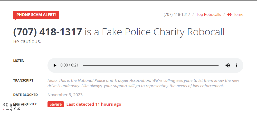 Fake Police Charity Robocall