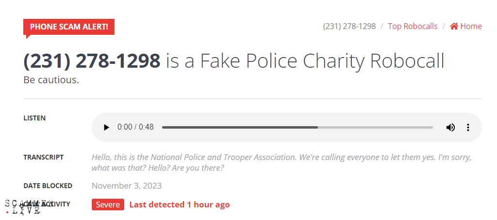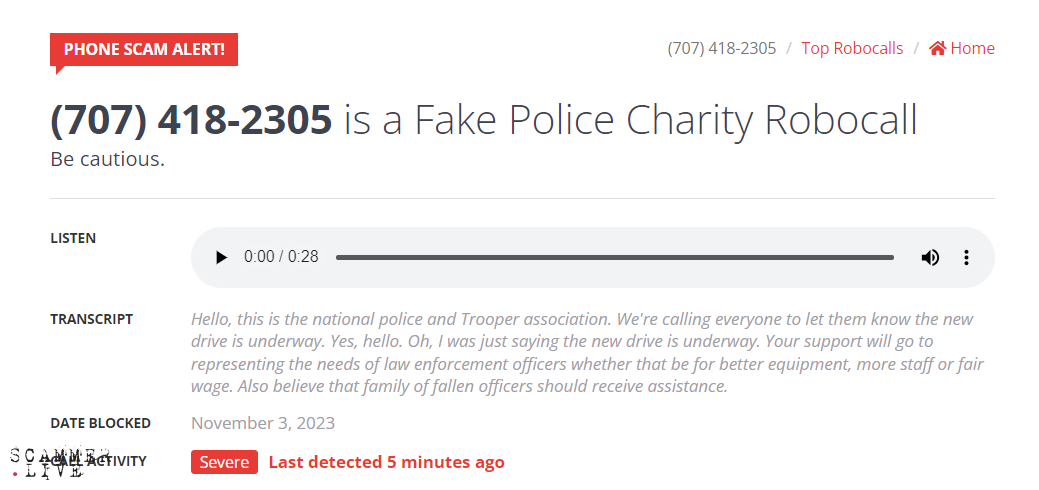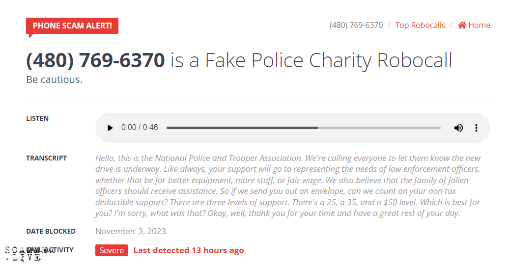 Fake Police Charity Robocall