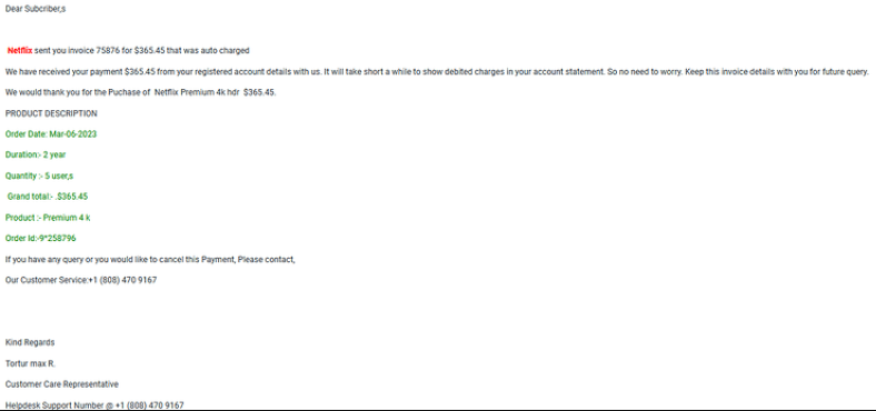 Netflix Customer Support Scam