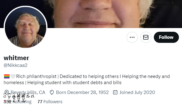 Sugar Daddy scammer on X trying to steal money / gift cards...