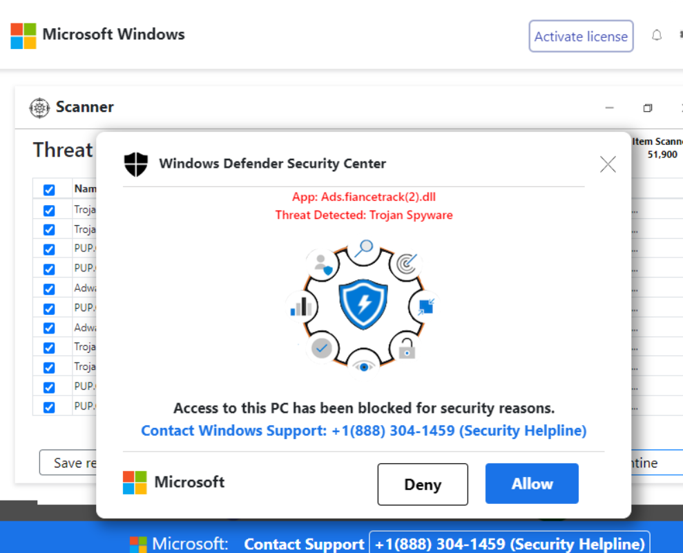 Microsoft tech support scam / fake popup