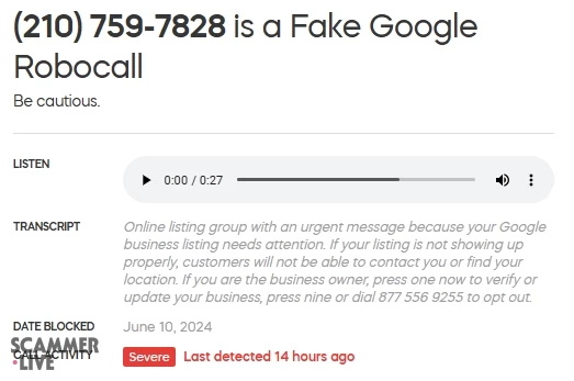 Fake Google Robocall