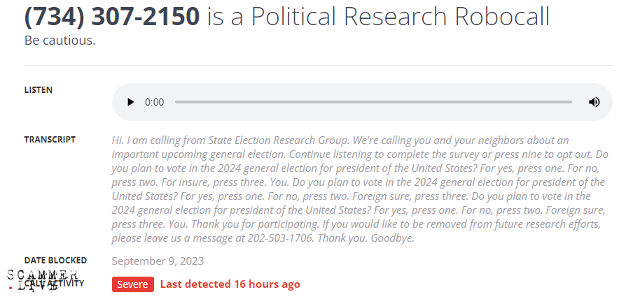 State Election Research Group / robocaller
