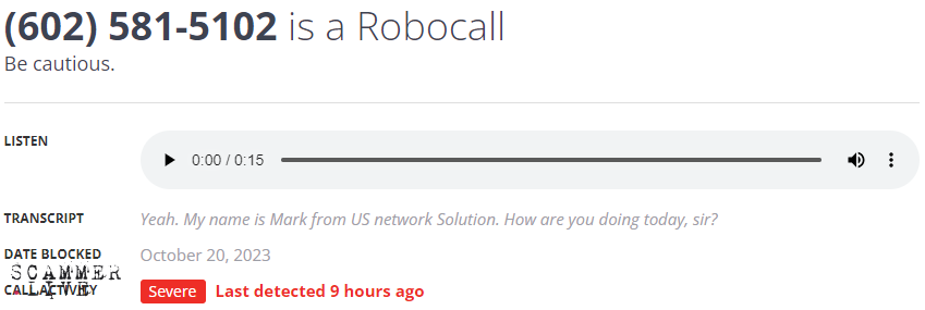 Robocaller / Mark from US network Solution / Robocall