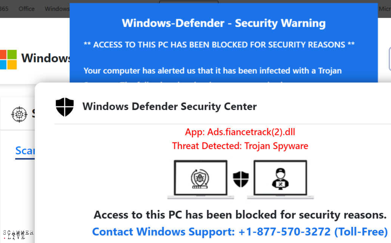 Fake Tech Support Number, fake popup Windows Defender Securi...