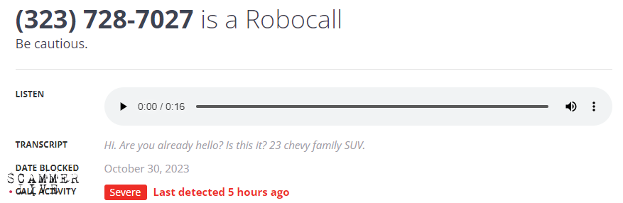 Robocall / chevy family SUV / Robocaller