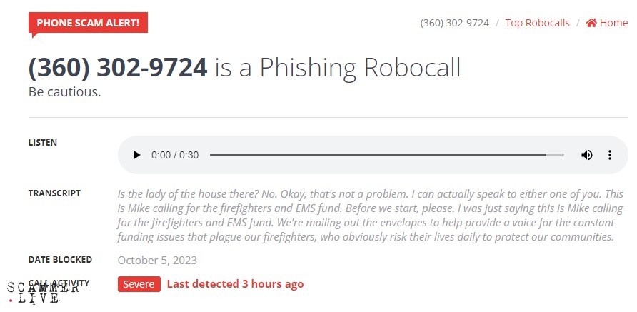 Phishing Robocaller: Mike from Firefighters and EMS fund