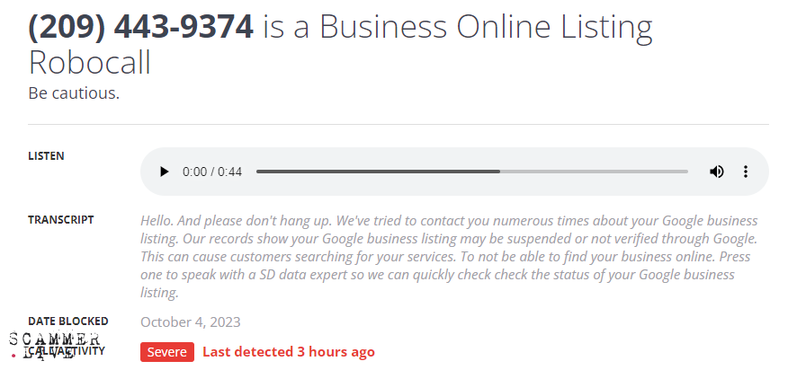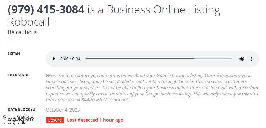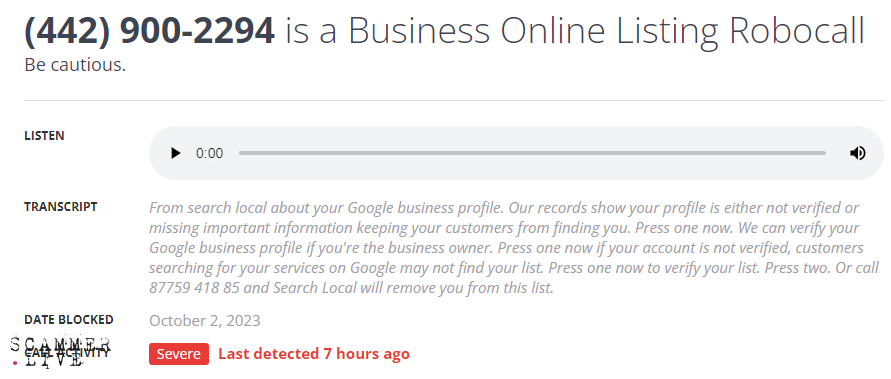 robocall / Business Online Listing / robocaller