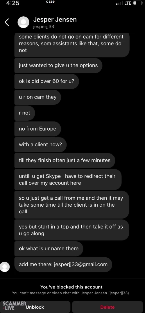 Jesper Jensen is a scammer and fake, pretends to have a job for you. And will lure you onto the Skype app live:.cid.41669101a7672b2e
