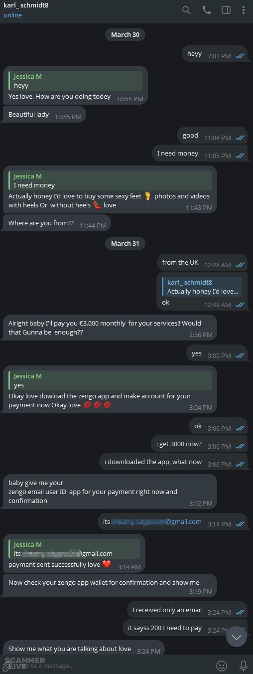 the scammer is acting like that he paid me, but its a scam, it will send a fake email ( zengobitcoinwallet3@gmail.com ) with Zengo app images
