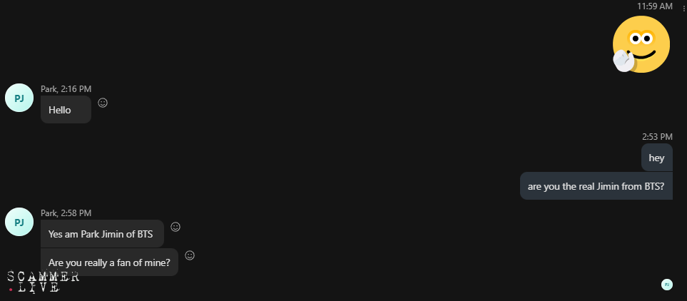 Scam/Fraud Info:this fake Park Jimin asked me for money, he wanted steam gift cards