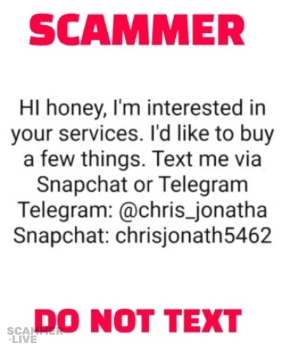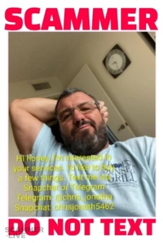 This scammer named chris_jonatha is stealing money and blackmailing girls on Telegram, Snapchat, Discord, luring them from the platform HEPAYS.com