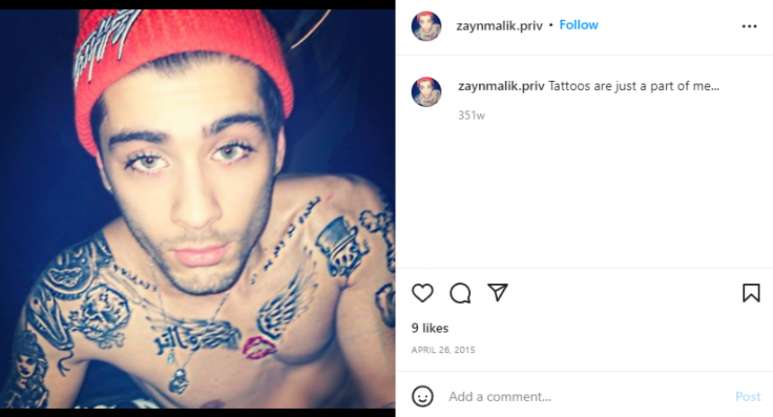 In one of his posts he claims to be Zayn Malik by saying: "Tattoos are just a part of me..."